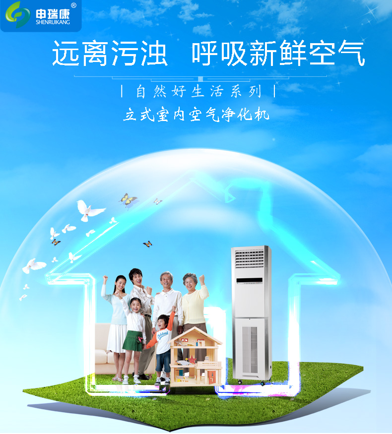 申瑞康落地式空氣凈化器由進風口、預過濾系統(tǒng)、高效過濾系統(tǒng)、風機、二段式高壓靜電場、浸漬型活性炭網、負離子發(fā)生器等部件組成。預過濾系統(tǒng),首先對空氣中較粗的飄塵粉塵截流過濾,一般5-6微米左右的飄塵粉塵可通過預過濾系統(tǒng)完成。設立的二段式高壓靜電場,它具有最佳集塵效果和最大的集塵面積。當污濁的空氣進入電場極區(qū)時,靜電場立即對空氣中飄塵粉塵、細菌、氣溶膠等雜質進行極化,使其帶上電荷,帶電的污染物進入高壓電場時被強烈的收集,被極化后的污染物被集塵區(qū)的極片有效吸集。最后還設置了浸漬性活性炭,用以吸附污濁氣體分子。 (1)電子集塵室除塵、滅菌凈化: