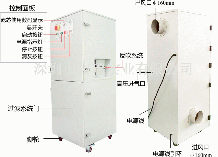 四、配置防爆凈化設(shè)備 申瑞深耕工業(yè)廢氣處理20年,研發(fā)的一款可以用于易燃、易爆粉塵場所的煙塵、粉塵凈化專用煙塵凈化器。該設(shè)備通過了粉塵防爆認(rèn)證,適合易燃、易爆粉塵場所的空氣凈化。具有風(fēng)量大、負(fù)壓高、自動(dòng)化程度高、穩(wěn)定可靠、節(jié)能、占地面積小、使用方便等一系列優(yōu)點(diǎn),能滿足一般清潔生產(chǎn)要求和一些特殊工況要求,能直接吸收其它機(jī)器或者特殊作業(yè)過程中產(chǎn)生的金屬大顆粒物和粉塵、煙霧、碎屑等。適用于激光打標(biāo)大面積金屬和非金屬材料、電焊、機(jī)械磨床、手工打磨、研磨、噴砂、攪拌、切削、袋裝、有機(jī)玻璃加工、震動(dòng)篩網(wǎng)、空氣輸送、包裝等作業(yè)的煙塵、粉塵收集凈化。該設(shè)備特別適合于鋁合金鎂合金打磨、面粉加工廠、家具廠等產(chǎn)生的易燃易爆粉塵場所。
